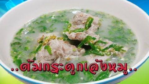 ต้มกระดูกเล้งหมู รสแซ่บ เครื่ิองปรุงและวัตถุดิบ 1.กระดูกเล้ง 800 กรัม 2.เกลือ 1 ช้อนโต๊ะ 3.น้ำเปล่า 4.พริกขี้หนูเขียวบุบ 5.มะนาว 3 1/2 ช้อนโต๊ะ 6.น้ำปลา 3 ช้อนโต๊ะ 7.น้ำตาล 2 ช้อนโต๊ะ 8.ผักชีฝรั่งซอย 9.ผงปรุงรส 1 ช้อนโต๊ะ วิธีทำ 1.ล้างกระดูกเล้งให้สะอาดพักไว้ 2.ตั้งน้ำให้ร้อนใส่เกลือ พอน้ำเดือดใส่กระดูกเล้งลงไปลวกนาน 5 นาที เทน้ำออก 3.ตั้งน้ำใหม่พอน้ำร้อนใส่เกลือ น้ำเดือดใส่กระดูกเล้งที่ลวกไว้ลงไป.. ดูเพิ่ม