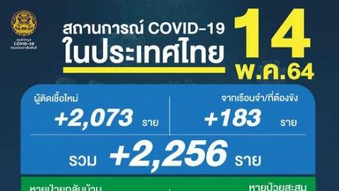 ยอดผู้ติดเชื้อโควิด-19 ณ วันศุกร์ที่ 14 พฤษภาคม 2564 รวม 2,256 ราย จำแนกเป็น ติดเชื้อใหม่ 2,073 ราย ติดเชื้อในเรือนจำ/ที่ต้องขัง 183 ราย หายป่วยกลับบ้าน 1,701 ราย ผู้ป่วยสะสม 67,187 ราย เสียชีวิต 30 ราย #ศูนย์บริหารสถานการณ์โควิด19 #ศูนย์ข้อมูลCOVID19 #ประเทศไทยต้องชนะ #ฉีดวัคซีนหยุดเชื้อเพื่อชาติ #NewNormalชีวิตวิถีใหม่ #สมดุลชีวิตวิถีใหม่ #ไทยรู้สู้โควิด ดูเพิ่ม