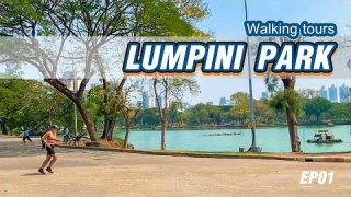 Walking Tour BANGKOK Lumpini Park on working day | No tourists | EP01